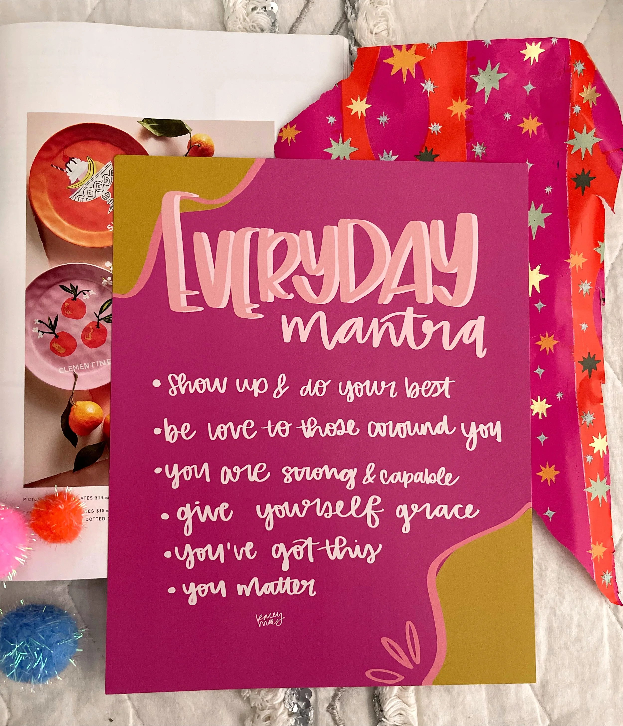 Categories: All Canvas Cards Prints All / Prints All Canvas Cards Prints PRE-ORDER: Brunch $20.00 Keep Showing Up Print $15.00 Disco Ball Print $15.00 Mama Mantra $15.00 Everyday Mantra Print $15.00 Mantra For Mom and Dad Print $15.00 Hey, Boo! Limited Edition Halloween Print Sale Price: $10.00 Original Price: $15.00 Sale