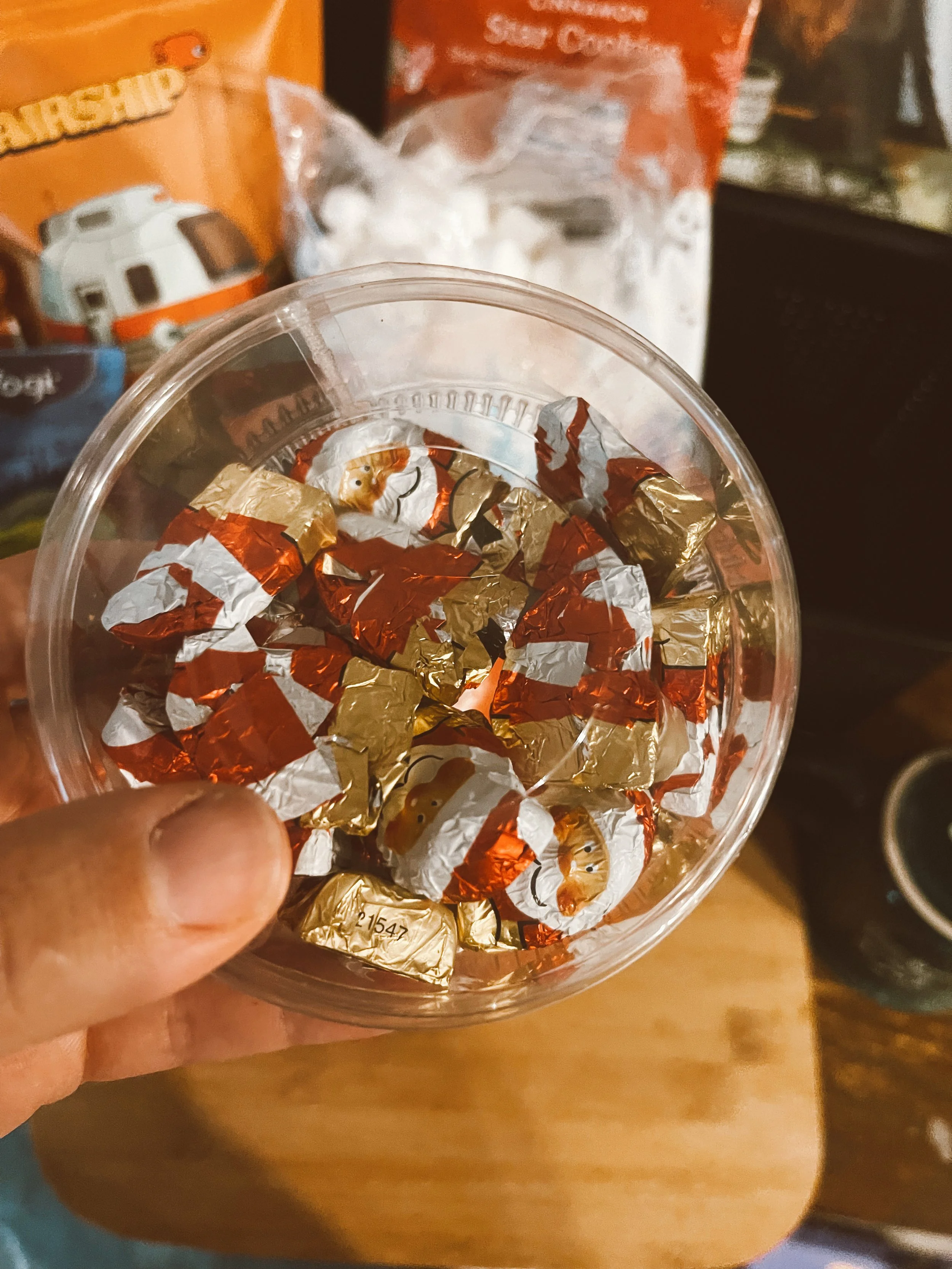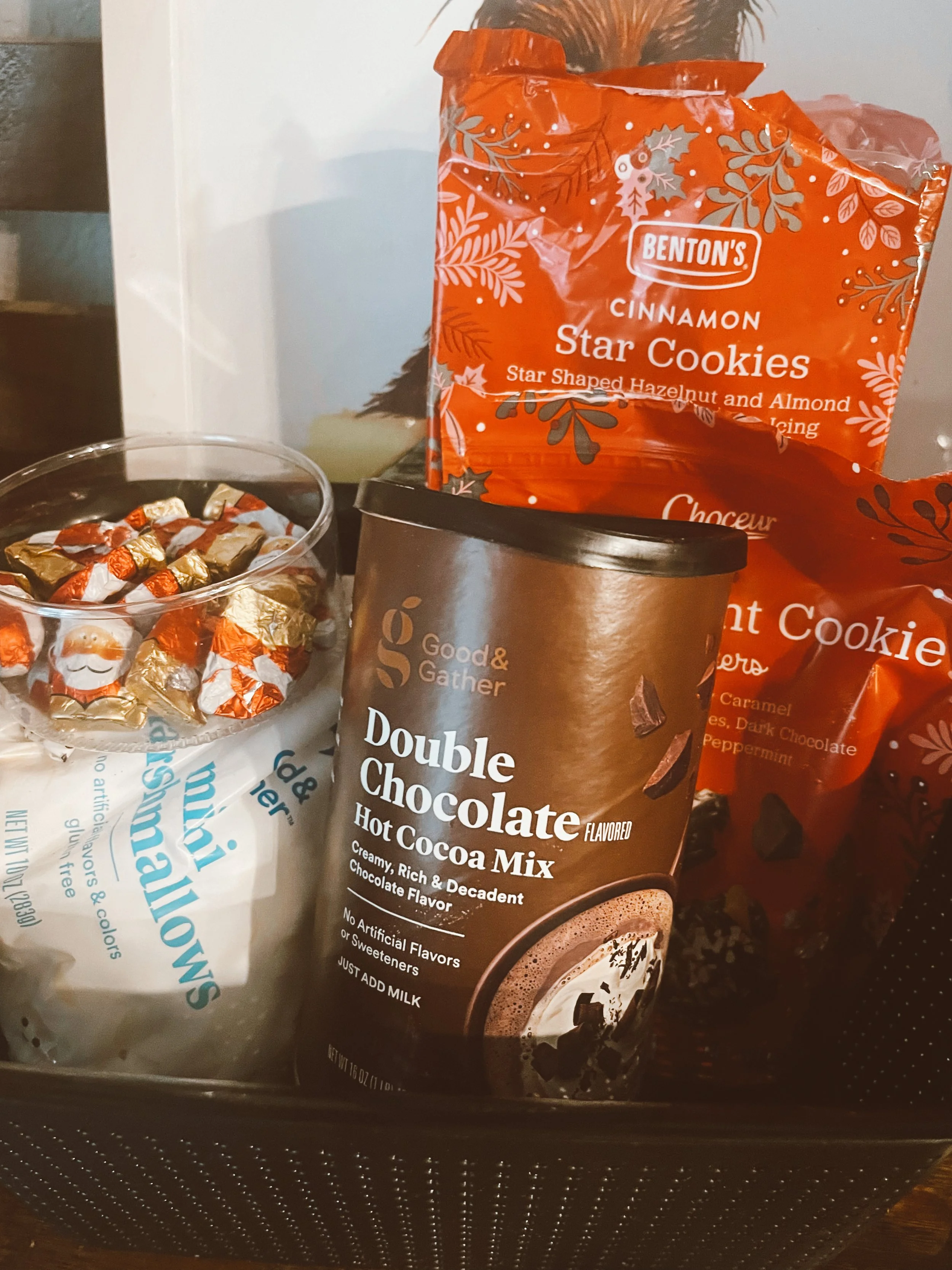 The last item I added were these cute little chocolate Santas from Aldi. They are the perfect size to put atop your hot cocoa!