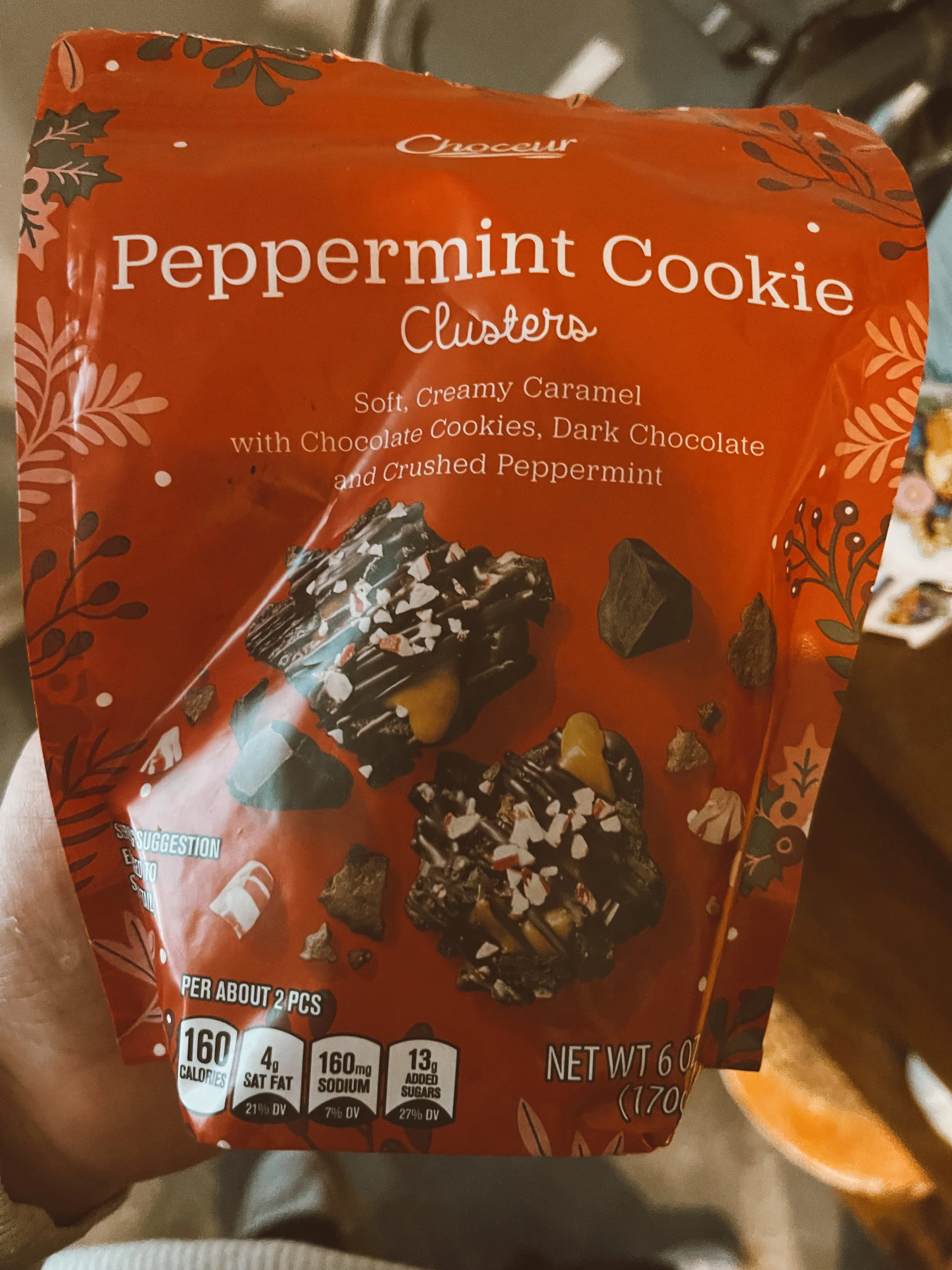 They also had these really good peppermint, caramel cookie clusters. These sweet treats are SO good! After putting them in my hot chocolate, I don’t know if I would top it with that in the future. However, putting them on the side would still be a good option. They taste so yummy! Don’t ask me if I scanned them on the Yuka app too. Hint: I did not. We just will be blissfully unaware of how these rated.